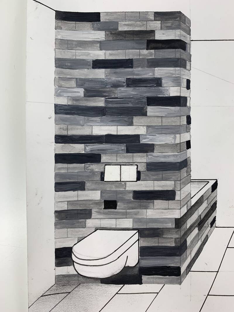 Schets van de badkamer / Sketch of the bathroom