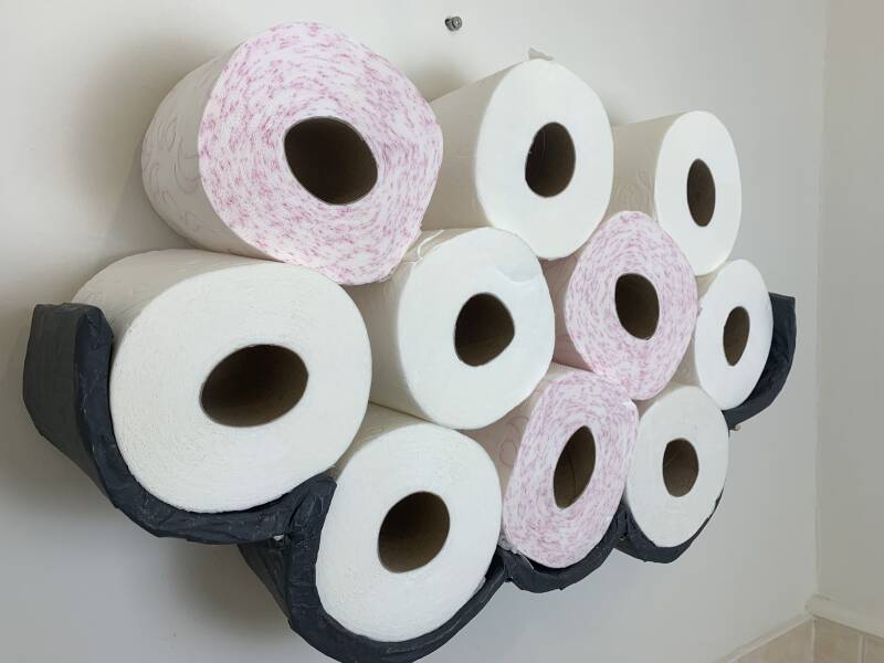 Thuis in het toilet stoorde ik mij al heel lang aan de wc-rollen die gewoon opgestapeld in een hoekje stonden. Ik vond dat dit best op een betere manier zou kunnen.